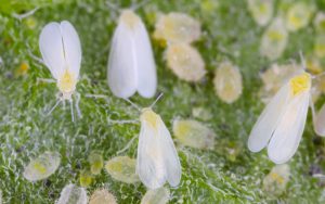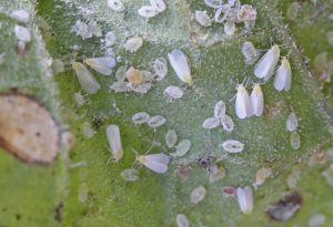 Vérifiez le revers des feuilles pour repérer des groupes d’adultes blancs ou de nymphes. Les pièges collants sont utiles pour la détection précoce.